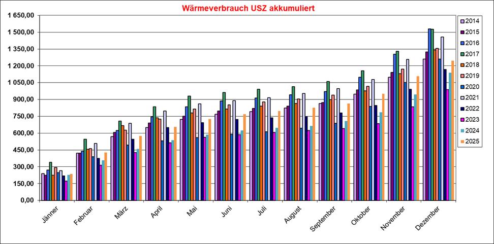 | Wärmeverbrauch USZ in MWh (abzüglich Bad